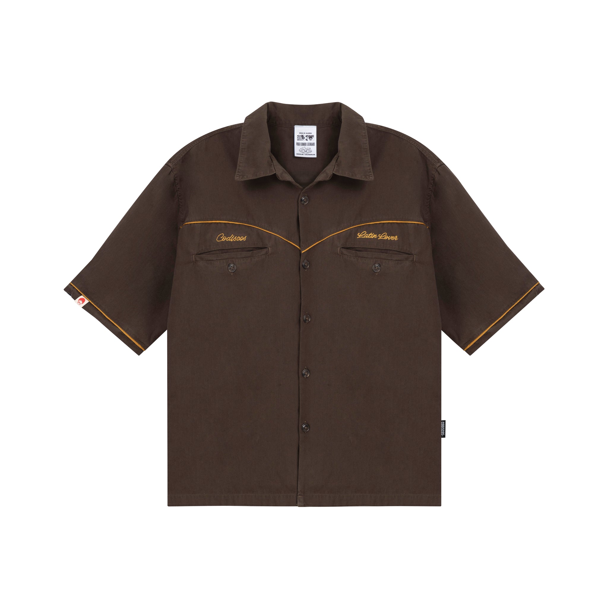 La camisa Poder Sonoro Legendario es una colaboración exclusiva entre Codiscos y Latin Lover. Confeccionada en 100% algodón de 200 gramos con un proceso de tintorería que le otorga un acabado único, esta pieza en color chocolate con detalles dorados combina estilo y distinción en una horma oversized pensada para el día a día. Sus bolsillos frontales y bordados premium en el frente y la espalda la convierten en una prenda que lleva el legado de la música colombiana con elegancia. Fabricada con orgullo en Medellín, Colombia.